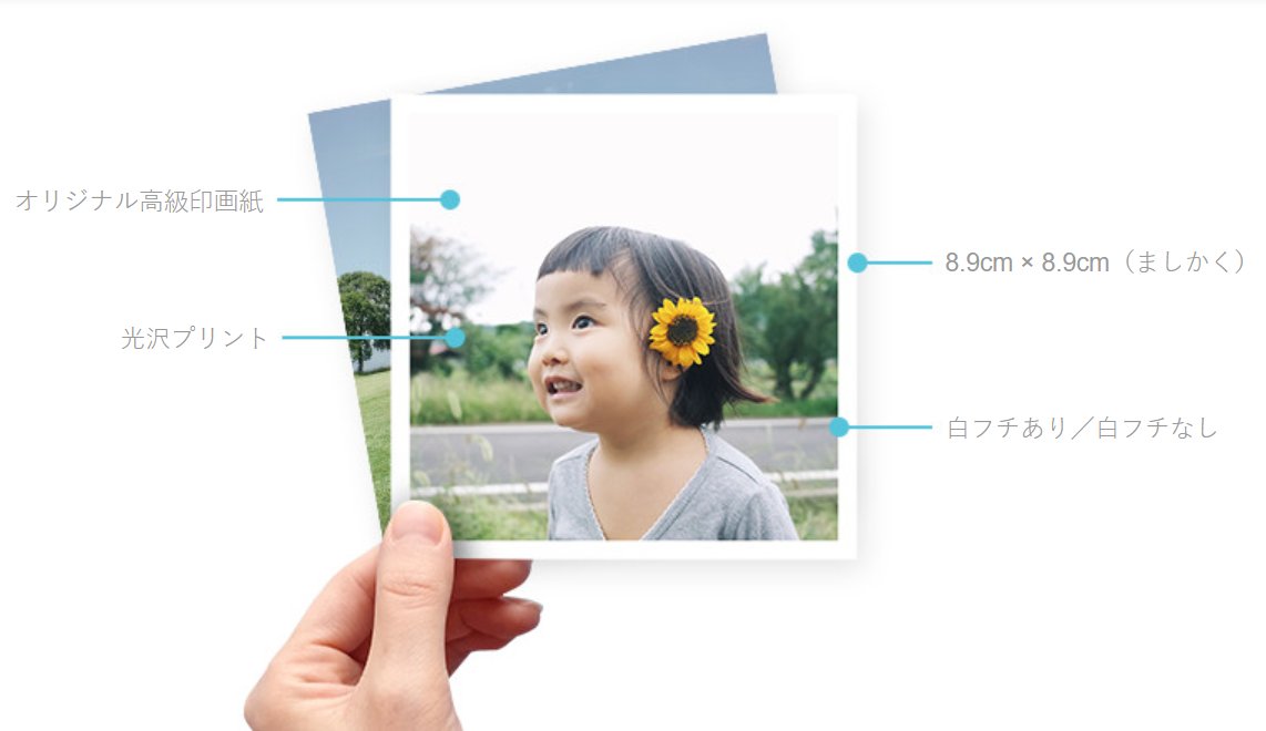 ALBUSの写真は8.9cm×8.9cmのましかくで、Instagramと同じようなスタイリッシュな印象です。