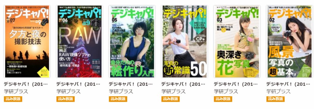 デジキャパ!も読み放題に含まれているので、気になるバックナンバーもまとめて読むことができます。