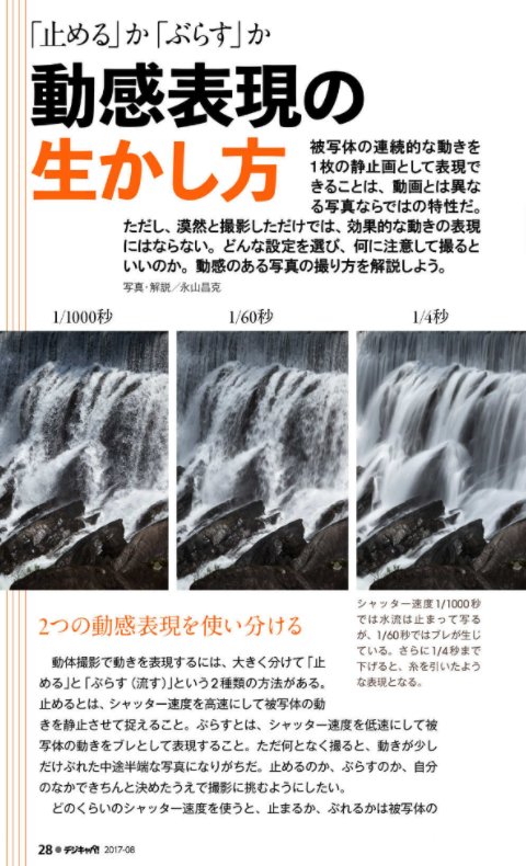 8月号の中には、動体撮影・花火撮影・タイムラプス撮影の3つの撮影方法が紹介されていました。