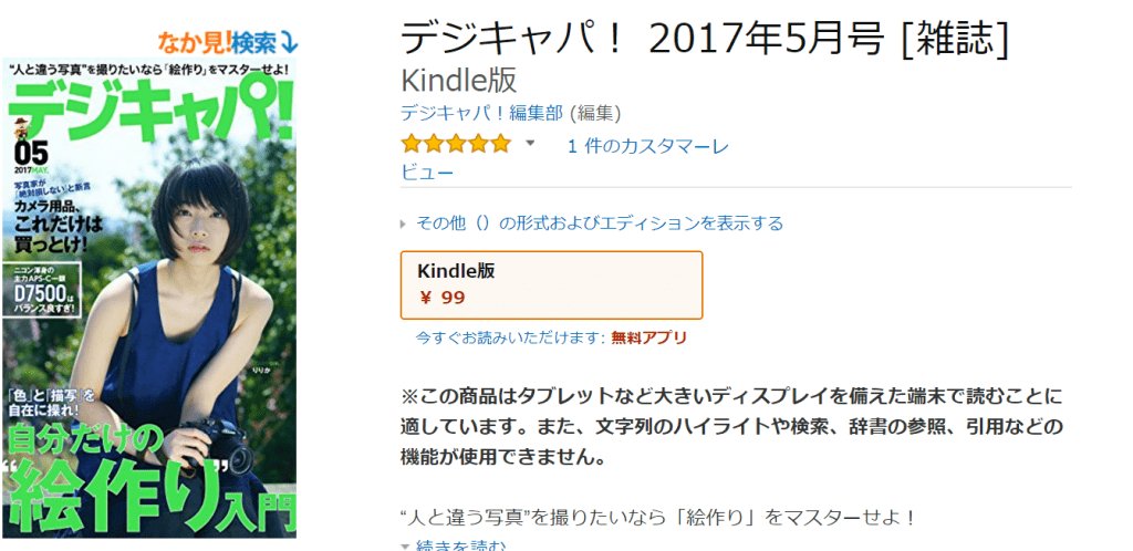 今出ている最新号は8月号ですが、定価700円の”デジキャパ!”が現時点で5月号はすでに99円に!