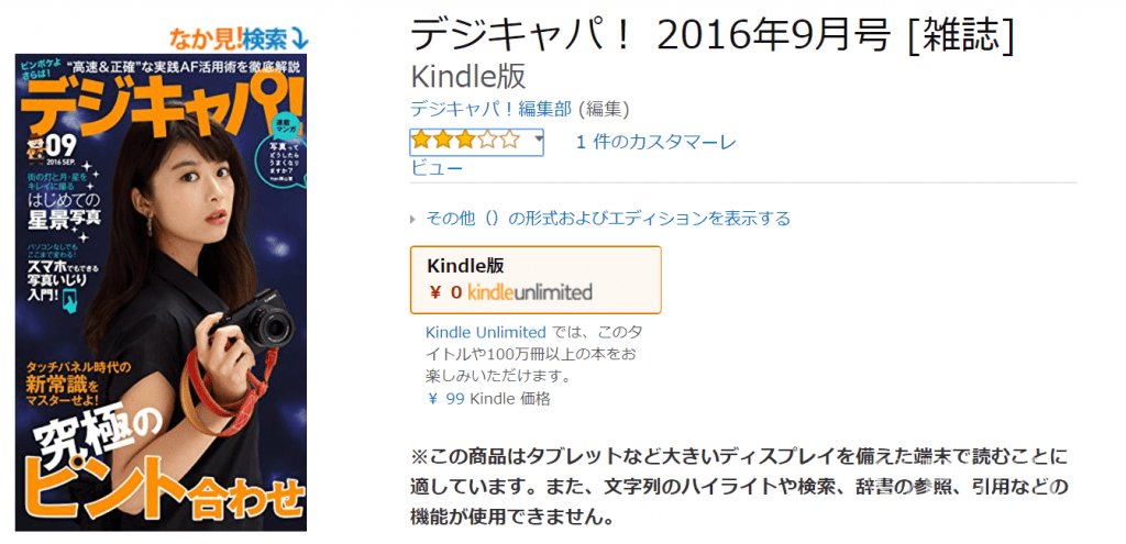 デジキャパ!以外にも前に挙げたデジタルカメラマガジン、カメラマン、CAPAなど他のカメラ雑誌も入っていて、しかもバックナンバーも読み放題です。