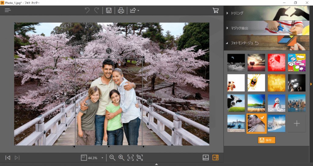 フォトカッターでは、写真の中の必要な部分だけを取り出して、他の背景に合成したりすることができます。