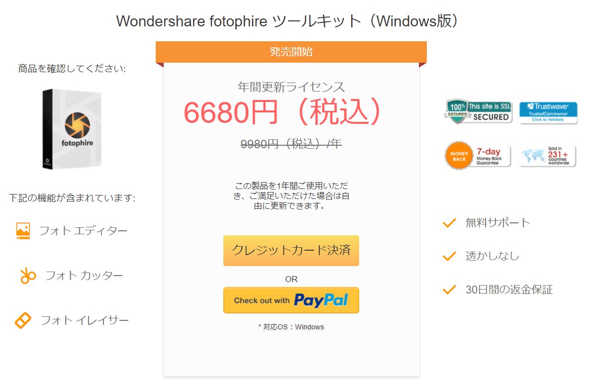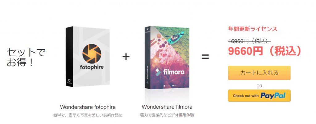 Filmora 6980円 + Fotophire 6680円 =13,660円(共に年間更新ライセンスの場合)