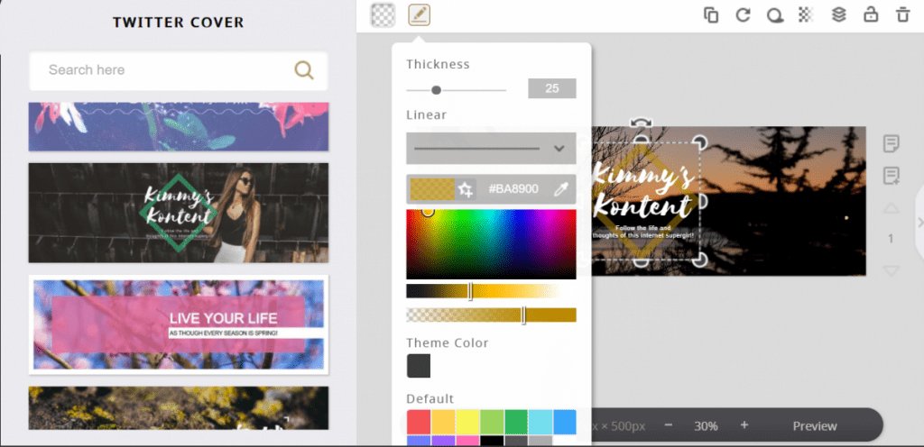 ツイッターカバー画像を開くと、テンプレートの一覧が表示されます。