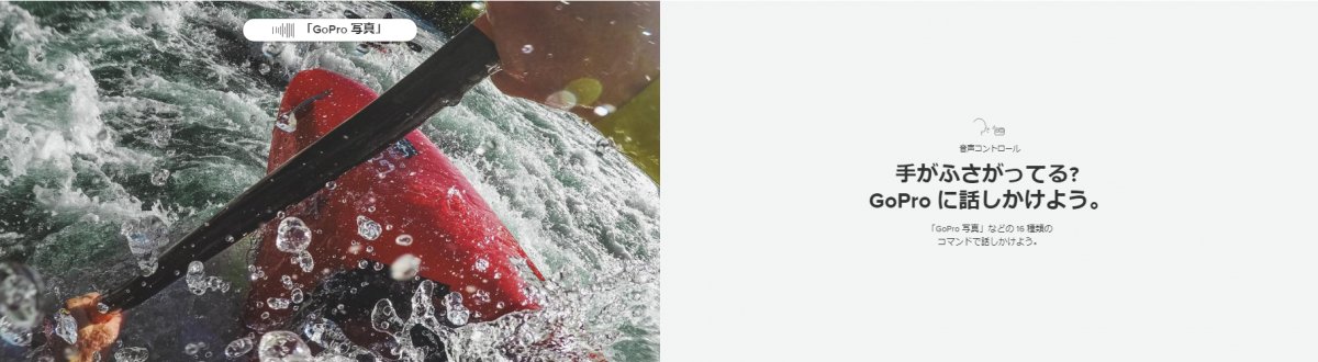 アクティビティ中など、手がふさがっている時に便利な”音声コントロール”機能。16種類のコマンドの中から話しかけることで、録画を開始したり、写真を撮影したりが簡単にできます。