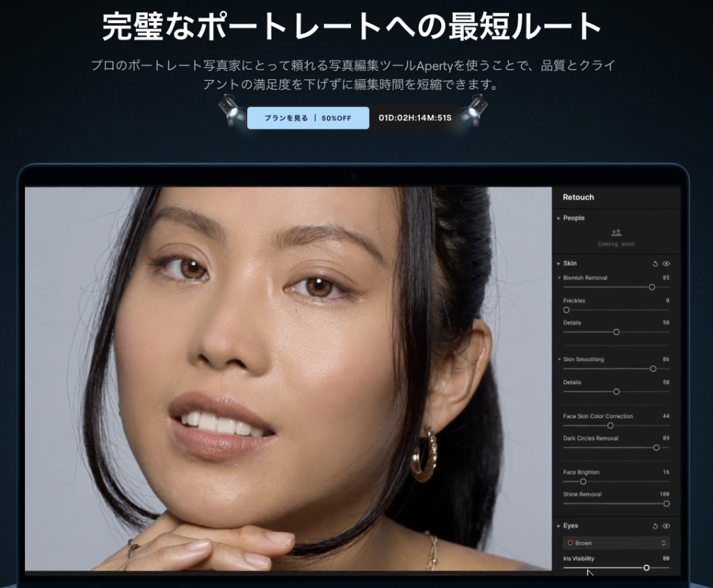 ApertyはLuminar Neoと同じくSkylumから出ている画像編集ソフトですが、ポートレートに特化しています。