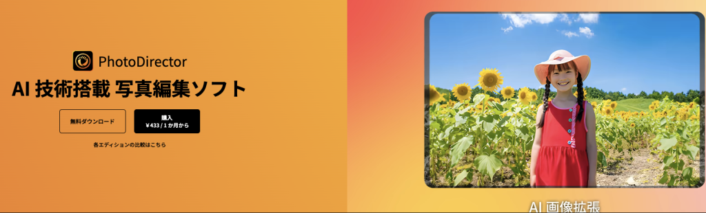 | PhotoDirector | 期限なし・機能制限あり | Cyberlink公式ページ |