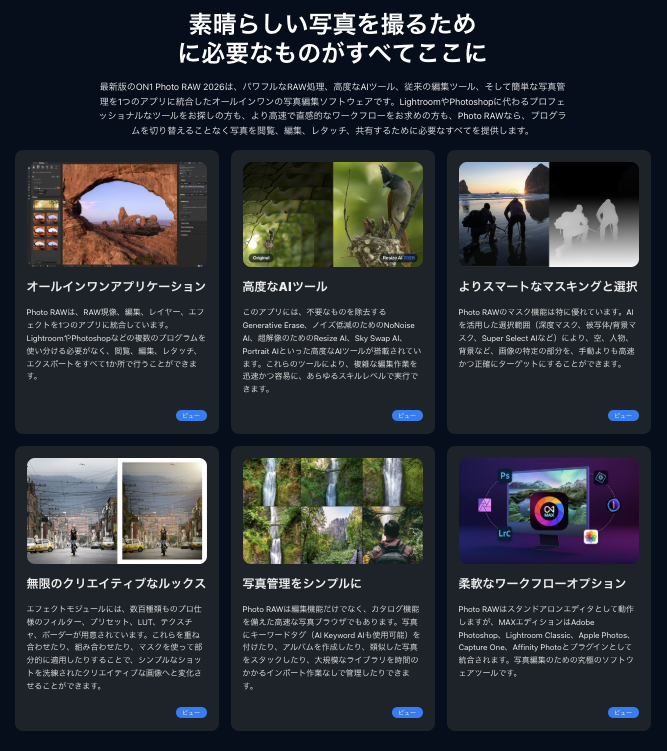 | 3位 ON1 Photo RAW(Cloud Syncプラン) | ON1 Cloudでモバイル・デスクトップを同期可能。買い切り派でも使える。 |