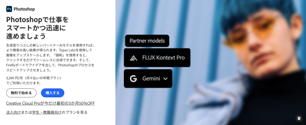 | Photoshop | 14日間 | Adobe公式ページ |