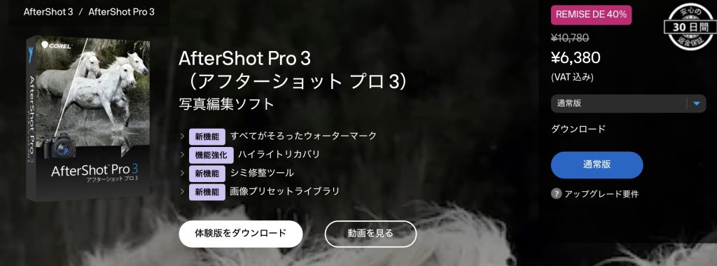 | AfterShot Pro | 30 日間 | Corel公式ページ |