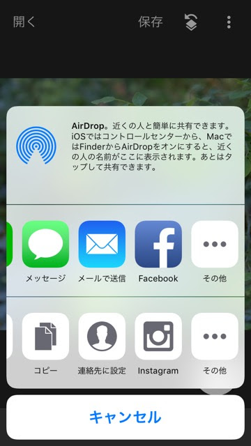 画像の加工が終わったら、画像を保存 または SNSにアップします。