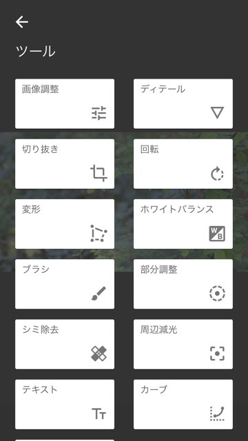 Snapseed の特徴は、パソコンで調整するような本格的な加工が簡単にできてしまうこと。