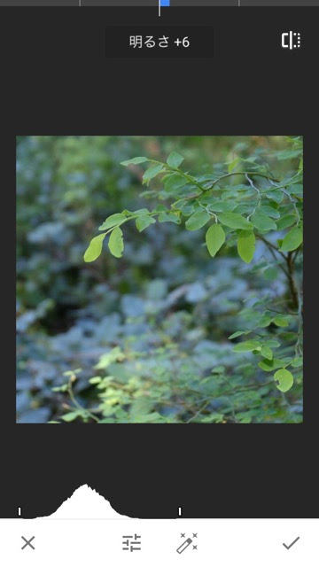 この写真の中では、上にあるバーが青くなっている部分で「明るさ+6」に変更したことがわかります。