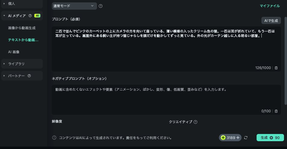 次は「テキストから動画生成」を試してみました!