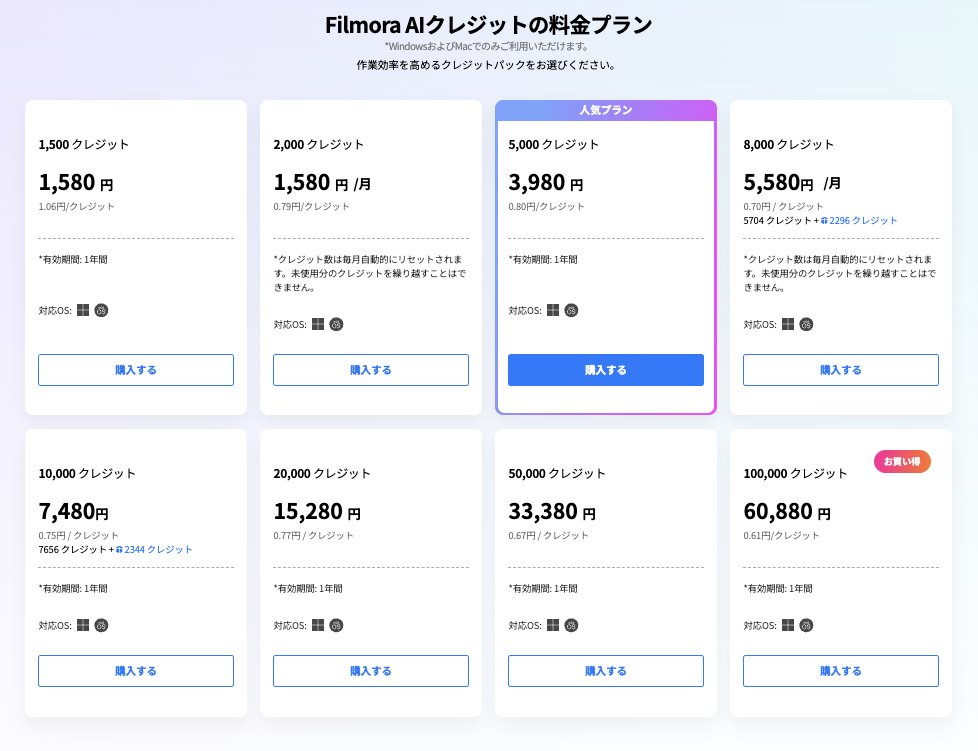 Filmora AIクレジット(AI生成の値段)について解説!